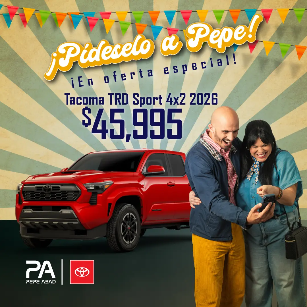 Las ofertas publicadas no pueden combinarse con otras ofertas o incentivos. Los precios especiales aplican únicamente si el vehículo es financiado a través de Toyota Financial Services (TCPR) y no incluyen gastos de registro ni tablillas.